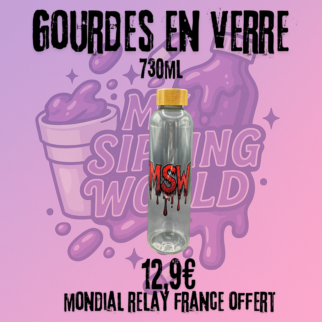 Découvre la nouvelle gourde en verre My Sipping World, un essentiel entre élégance et style street. Fabriquée en verre transparent épais, avec un bouchon en bois naturel, elle allie durabilité et design pur. Le logo My Sipping World y est apposé avec soin, symbole d’un univers où chaque détail compte.